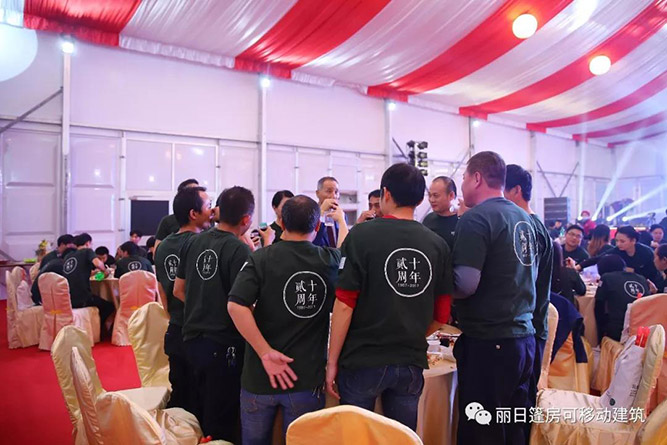 The speech of Chairman Chen Li was the most touching part in this grand celebration. For many years, Liri insists on being a private enterprise with social responsibility and insisted on participating in various public welfare activities as far, such as the Wenchuan, the Yushu and the Ya’an earthquake, Doumen Overseas Chinese Medicine Hospital, Zhuhai’s typhoon relief, but also actively involved in sports, many times for large-scale events to provide tents building structures. Ms. Chen Li, believes that public welfare is a way to spread positive energy to the society during the day and is a concrete action to return to the society in the day. It is also part of the corporate culture in the company. She also mentioned, in particular, the old staff who have been working for Liri more than 10 years. She believes that employees are the company’s most valuable asset in the past 20 years. Thanksgiving all workers devoted her best life to Liri, From a small workshop of less than 500 square meters, it has grown up to be a large-scale tent manufacturer and an industry leader, and now covers an area of more than 120,000 square meters. The future will also continue to invest, increase the company’s benefits to all the workers, let everyone share the fruits and glory with Liri.