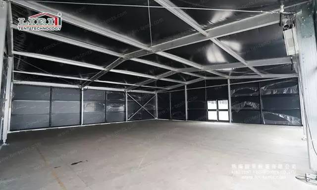 The cube structure tent is different from the ordinary A shape tent. The roof is flat with 7°roof pitch. The inflatable roof system provides heat isolation to achieve the thermostatic effect. This tent series has obtained the national patent. (Patent No.: ZL201520503410.8, ZL201120397654.4).