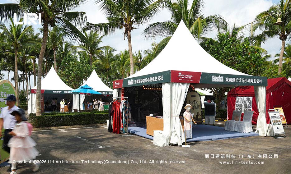 The optional accessories for the Pagoda are glass walling system, door units, flooring system, ground anchors, lining, etc. Pagoda tents can be used as a single unit or combined to enlarge space and become a special structure style with a rain gutter. Our pagoda tent can meet different levels of demand and is a more flexible choice for outdoor activities.